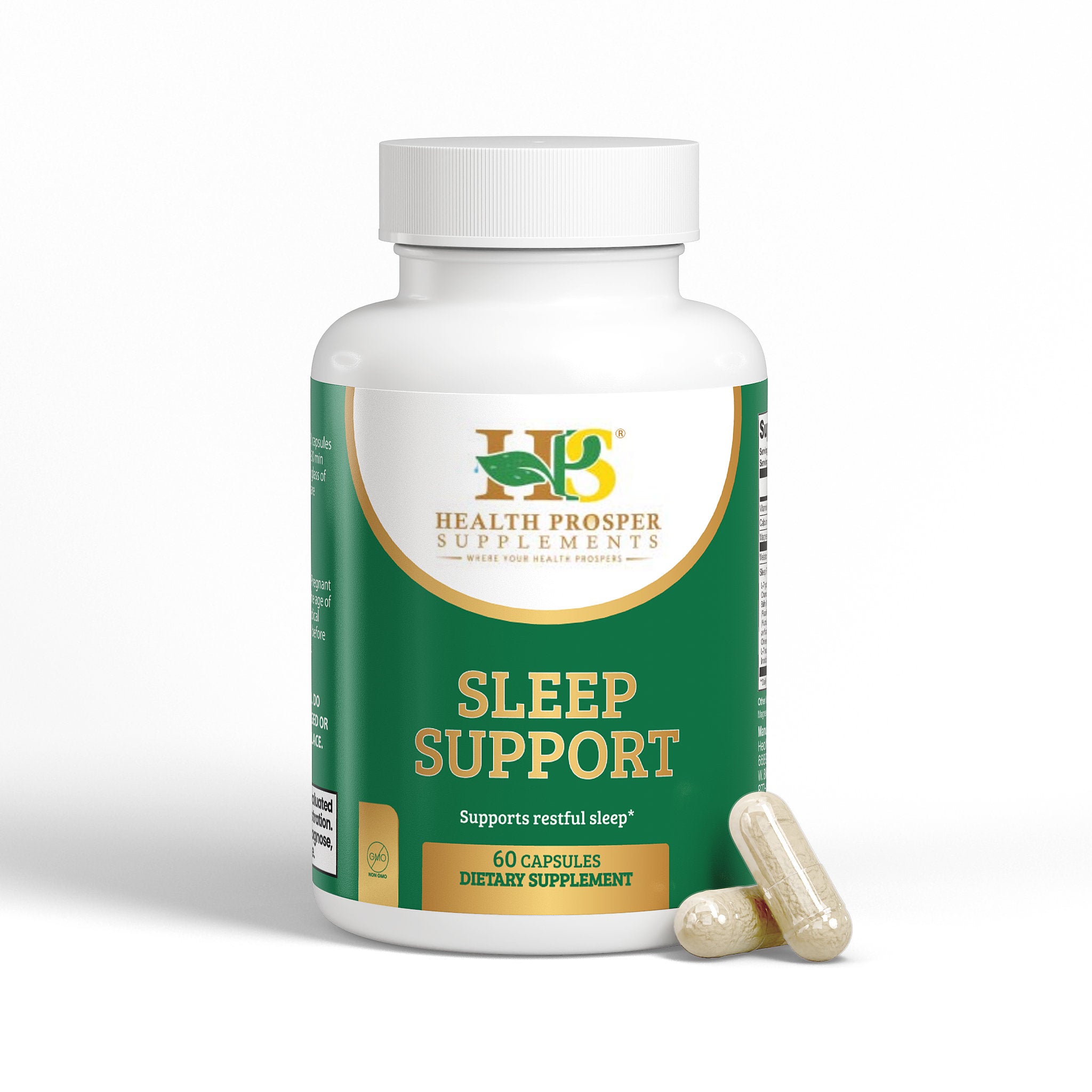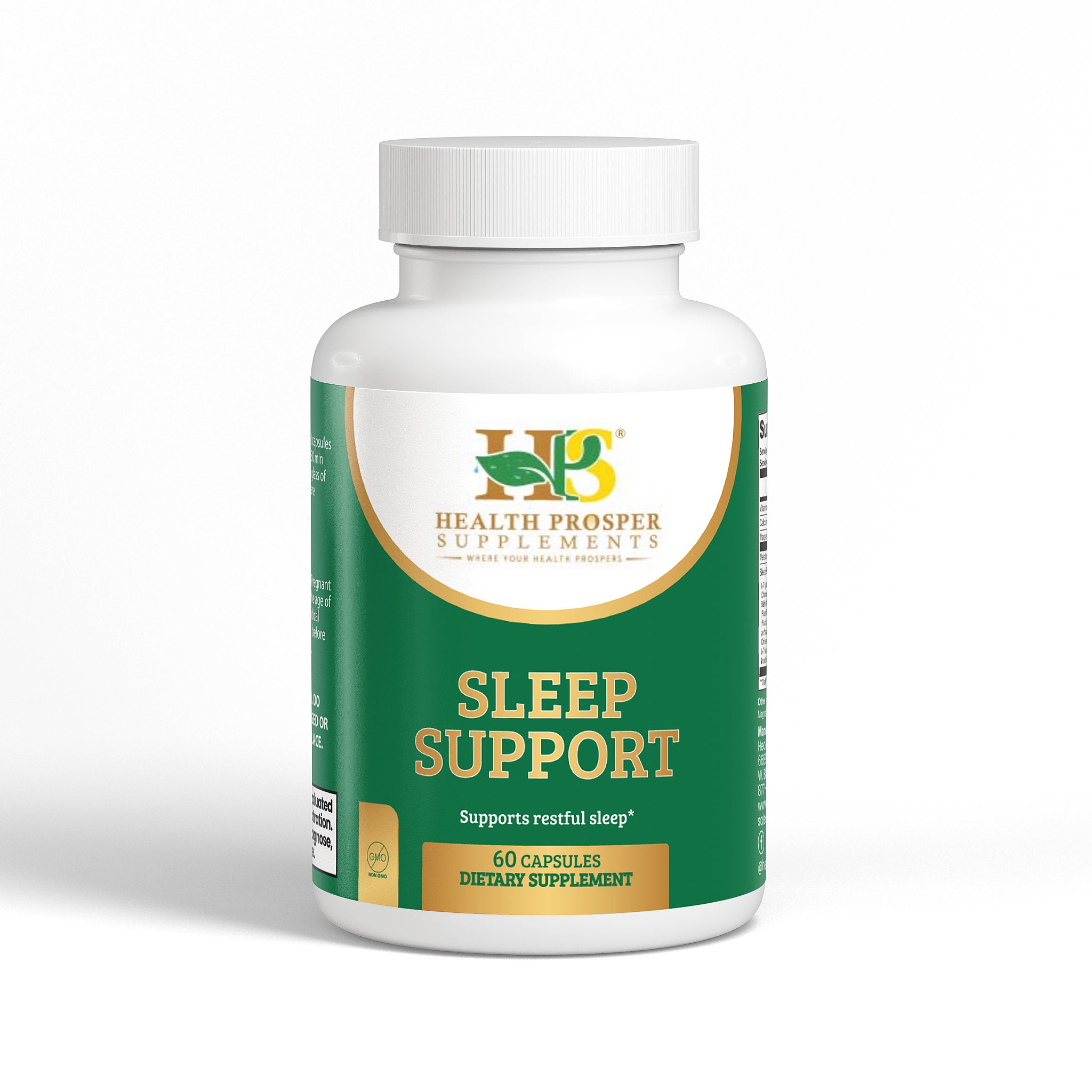 Ingredients: Magnesium citrate, Pyridoxine HCl Powder (Vitamin B6), Calcium carbonate, Melatonin, Sleep Formula Proprietary Blend (L-Tryptophan, Lycium (Lycium barbarum L.) (fruit), Chamomile (Matricaria chamomilla L.) (flower), Lemon Balm (Melissa officinalis) (aerial), Passion Flower (Passiflora incarnata) (flower), L-Taurine, Hops (Humulus lupulus) (flower), St. John’s Wort (Hypericum perforatum) (aerial), Gamma-Aminobutyric Acid (GABA), Chinese Skullcap (Scutellaria baicalensis) (root), L-Theanine, Ashwagandha (Withania somnifera) (root), Inositol, 5-HTP (Griffonia simplicifolia) (seed)), Hypromellose (Vegatable Capsule), Silicon Dioxide (Sipernat 22), Magnesium Stearate.